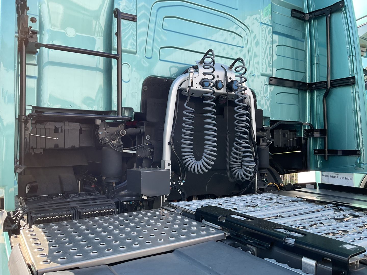 좌측에 위치해 있으며 차량 용도에 따라 높이 또는 낮게 장착이 가능합니다. 프론트 공기 흡입구도 장착 가능합니다.